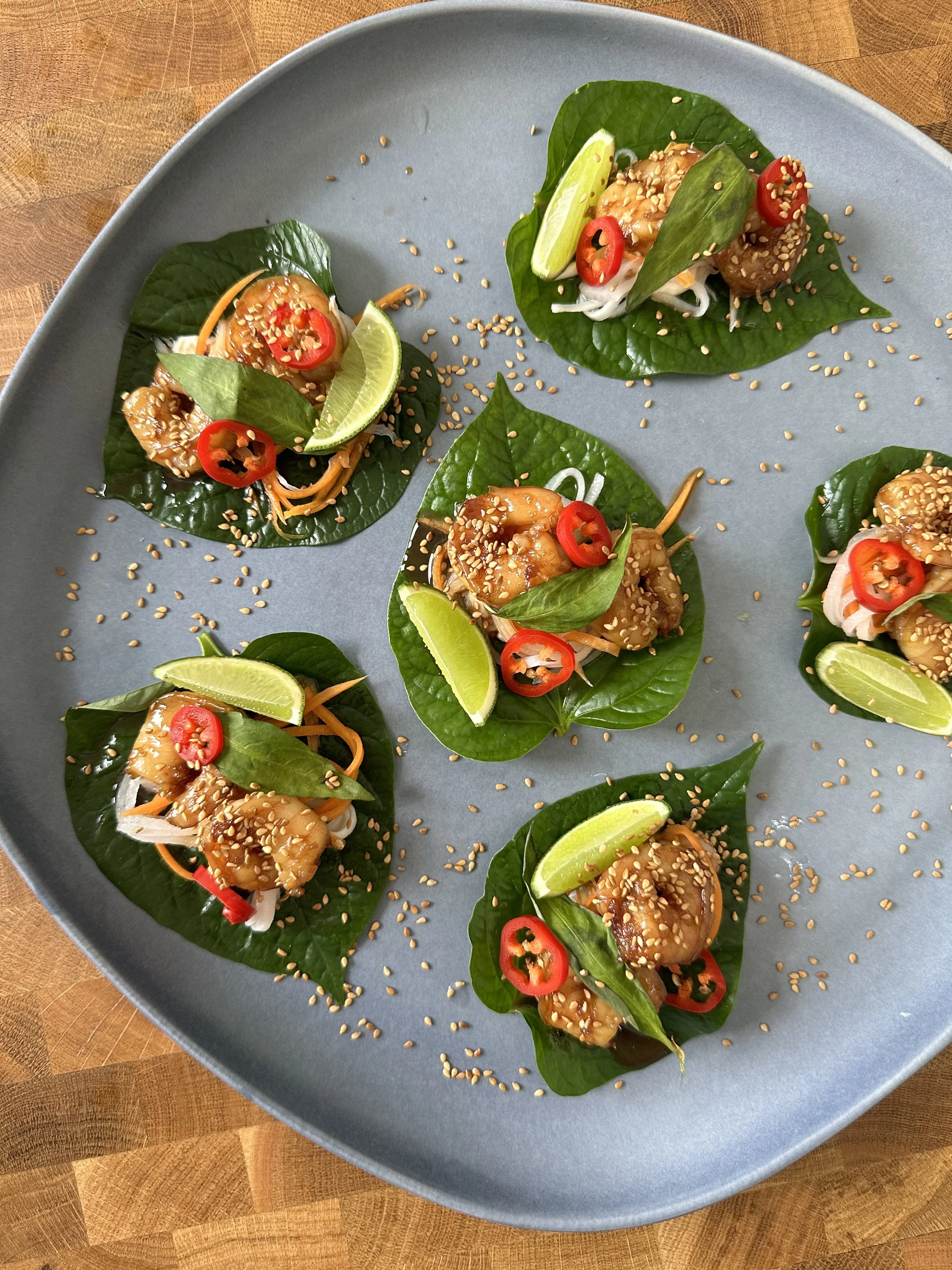 HONEY GARLIC PRAWNS BETEL LEAF 〰️